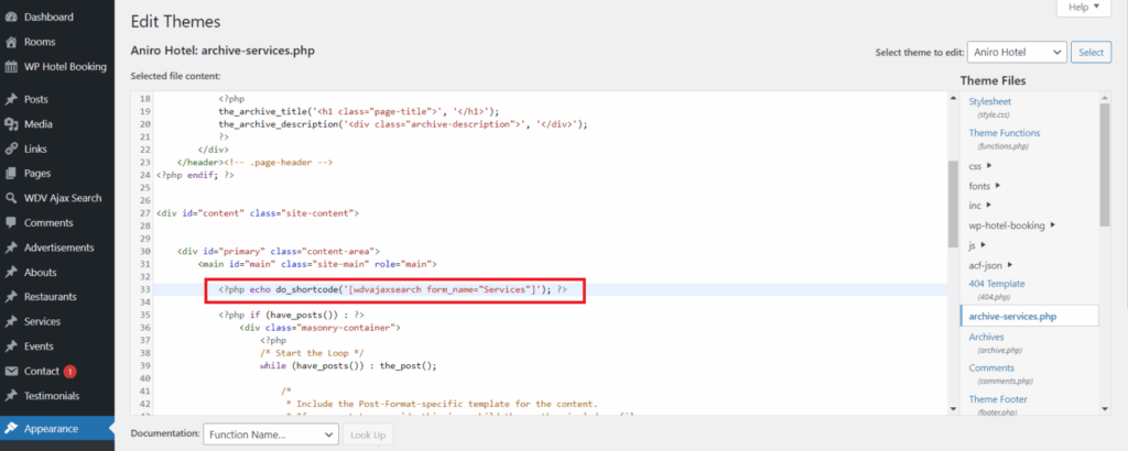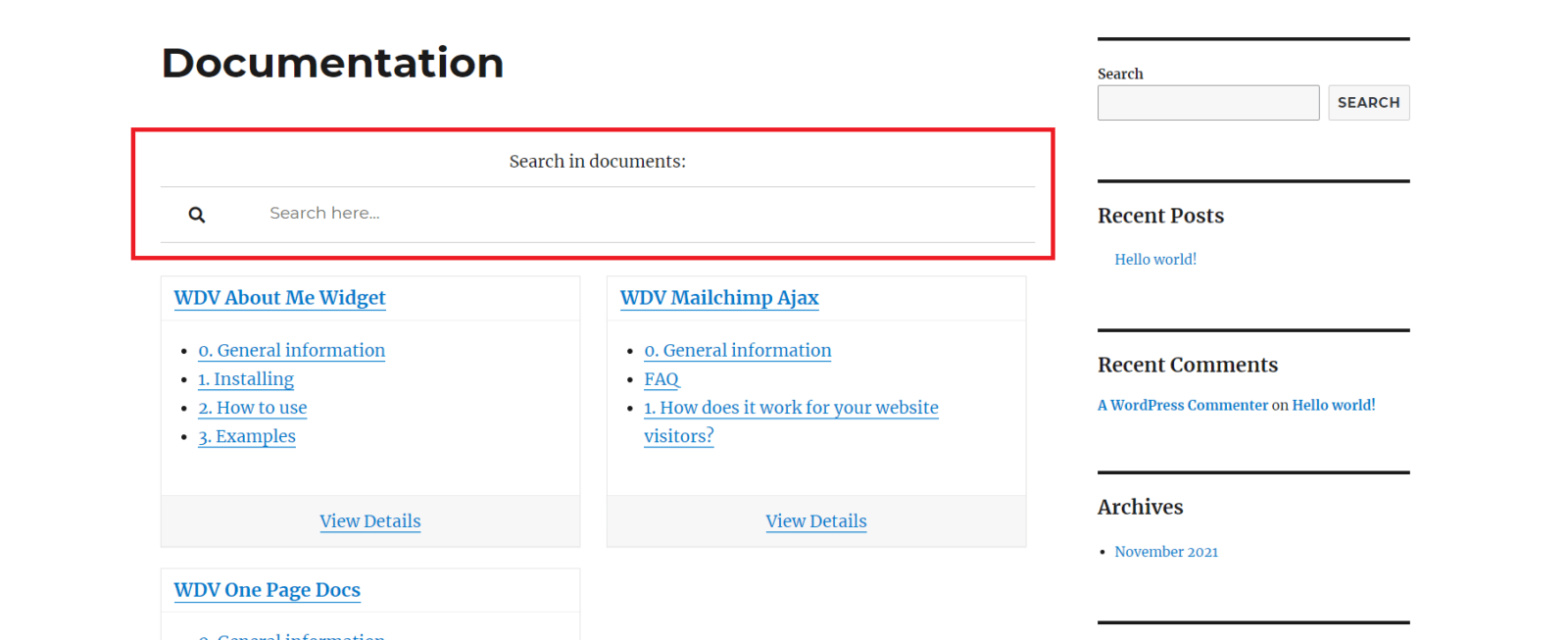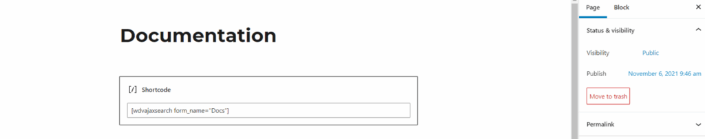 You can add the shortcode directly to the page where you want to see the search form. For example, you installed the documentation plugin for your products. Perhaps it does not have a search form and you can add a shortcode to search for documents to the page that displays the list of documents.