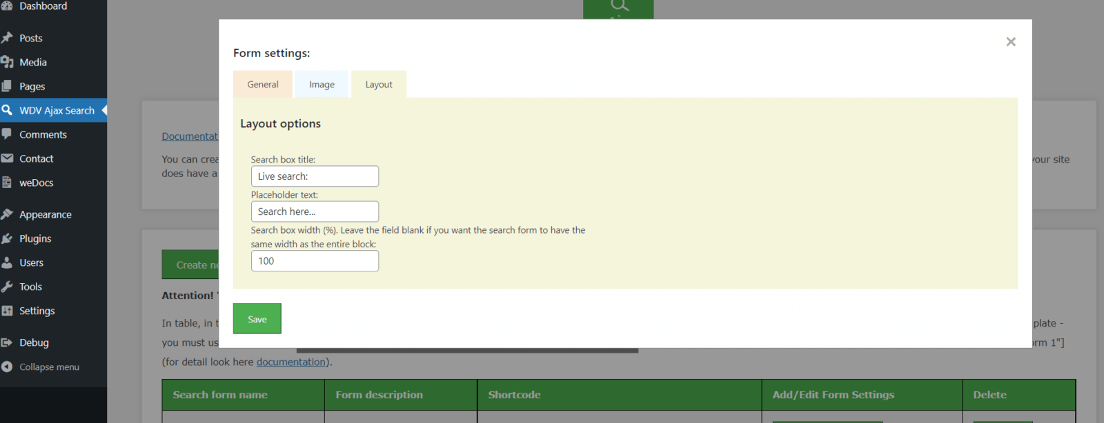 - Activate the WDV Ajax Search plugin through the ‘Plugins’ screen in WordPress.