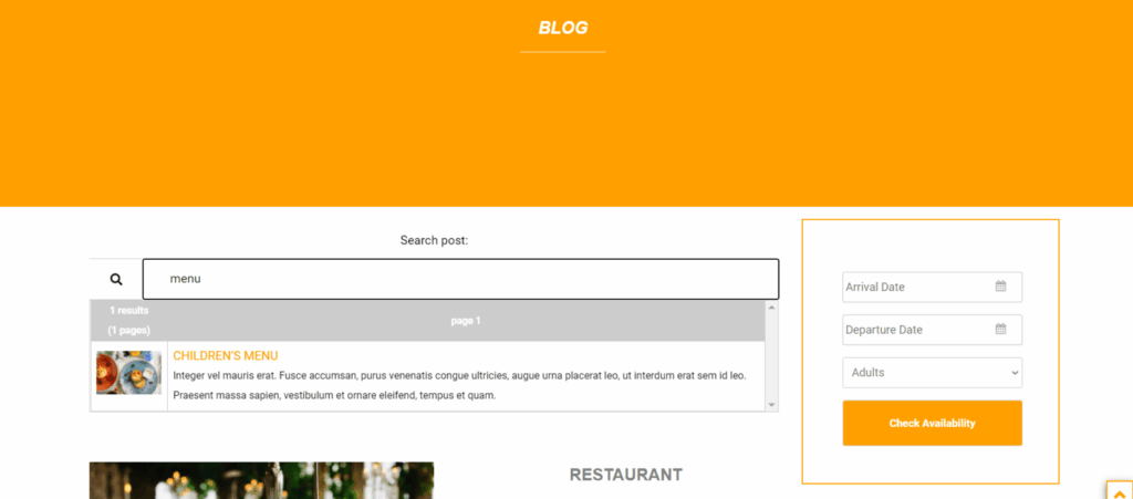 Here you can see search form on blog page: Blog (you can use for example "room" as a search word).